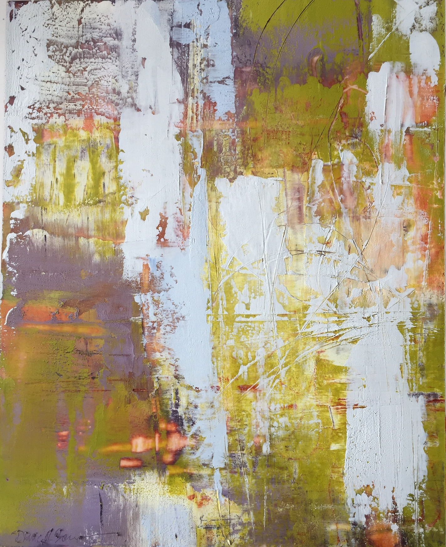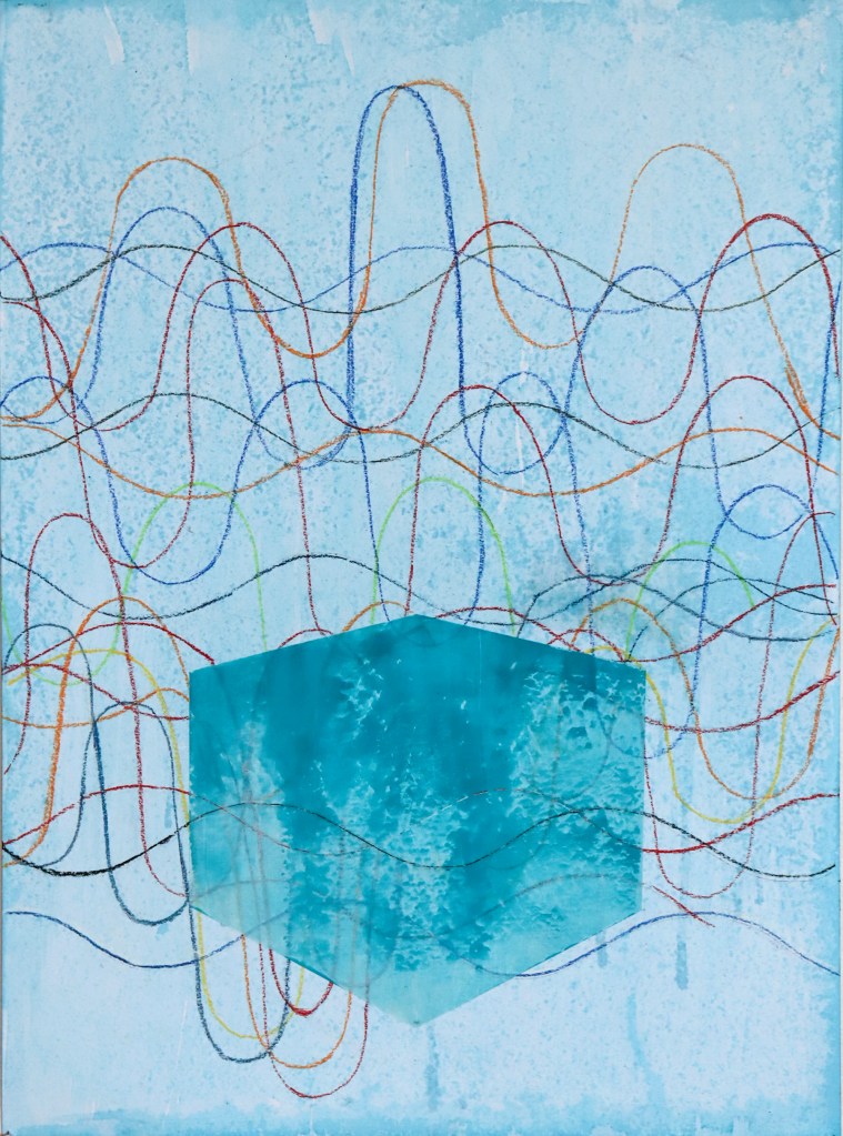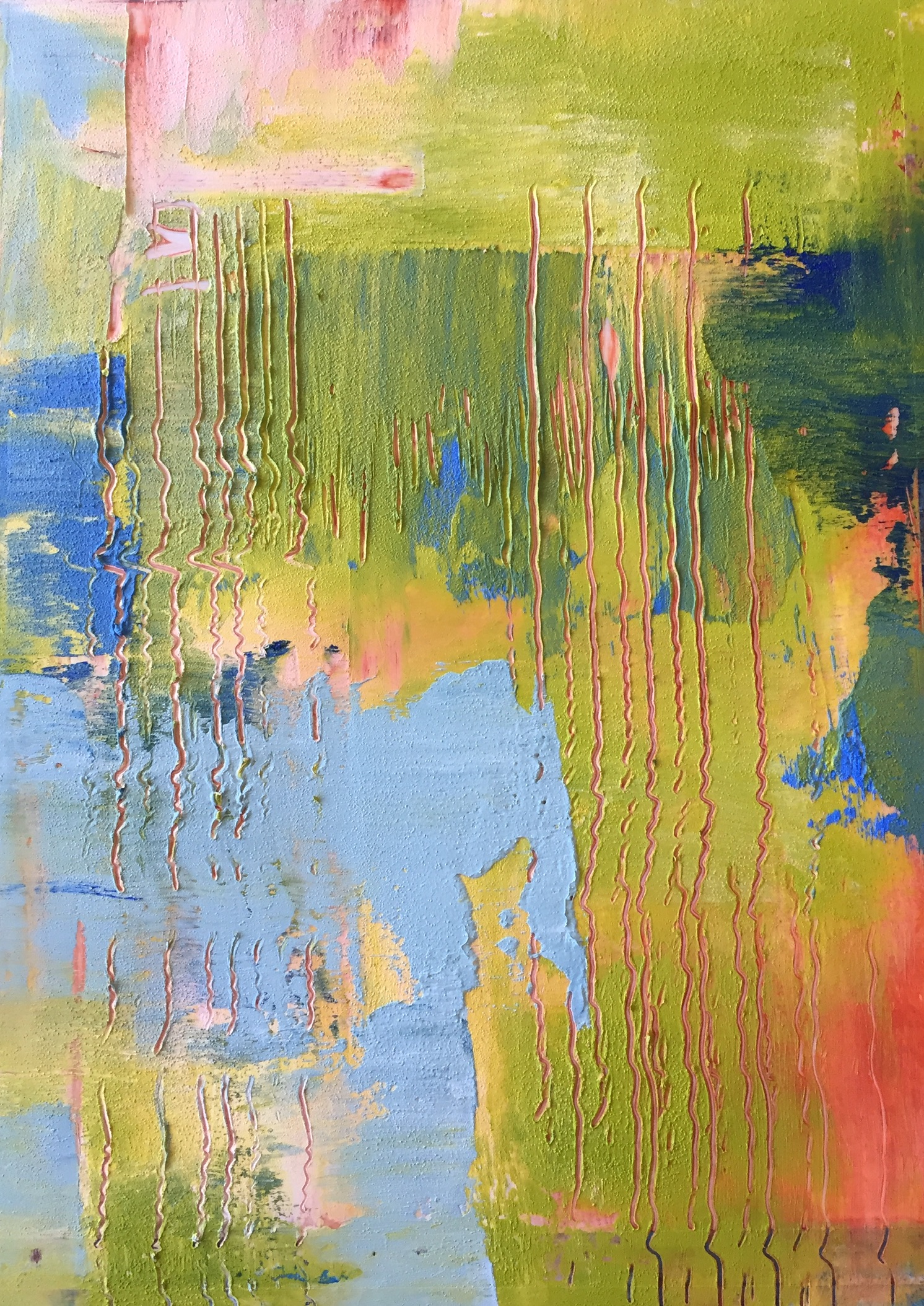- Spring Thaw, Oil and cold-wax, on Yupo clear, 14 x 11