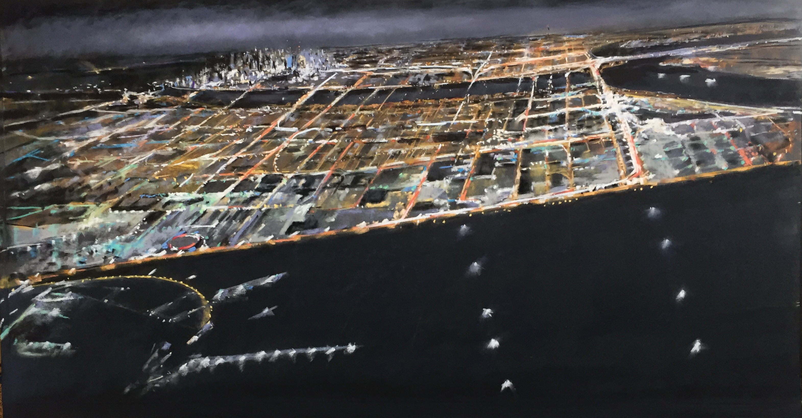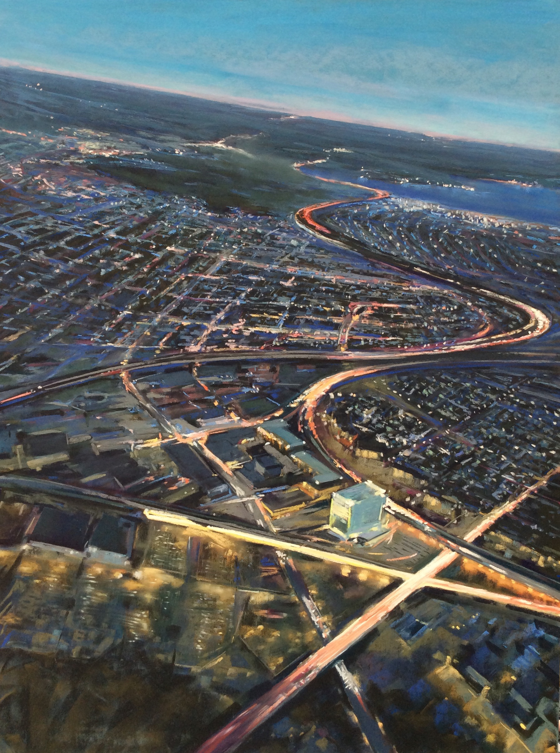 6. Ocean Towers, 18×30, pastel, ink, charcoal,on black paper