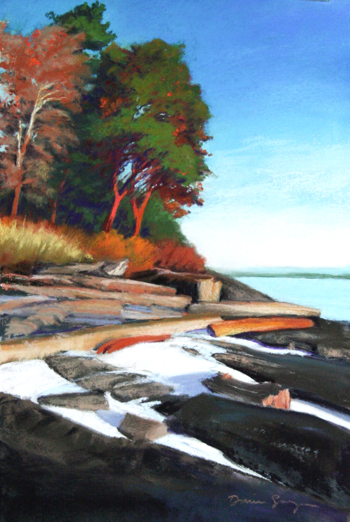 I am honored to have a painting included in the For Pastels Only show presented by the Pastel Painters Society of Cape Cod June 26-July 22, 2012. It was an impressive grouping of work by many well-known artists working in this medium. The opening was at the Cultural center of Cape Cod in South Yarmouth. It was fun to see many of the artists that I have met at various workshops this past year, and a pleasure to see so many beautiful paintings. White Beach Dawn, shown below, was selected for inclusion in the show. This painting of the white shell beach and Madrona trees along the rocky coast line of British Columbia’s Vancouver Island is set in one of my favorite places, Yellowpoint.