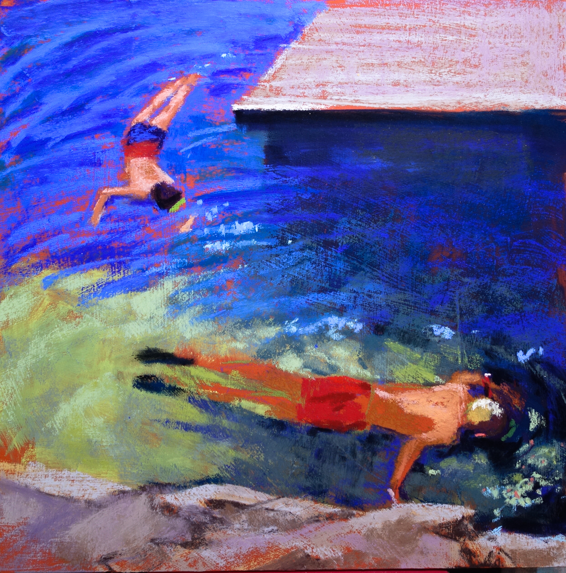 My summer show, “Dive-in!” is up at the Dolphin Gallery. The show opening is this coming Monday, August 8, from 5:30-7:30 at the Hingham Library, 66 Levitt St, in Hingham MA. The show will be up until the end of September.