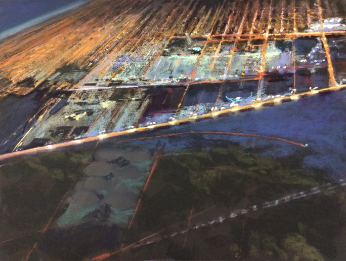 Ocean Towers, 18×30, pastel, ink, charcoal,